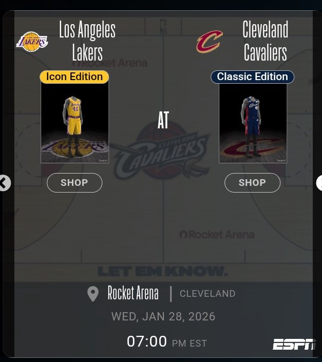 本场比赛将是湖人前锋詹姆斯重返克利夫兰的焦点一战,ESPN将对比赛进行全美直播。