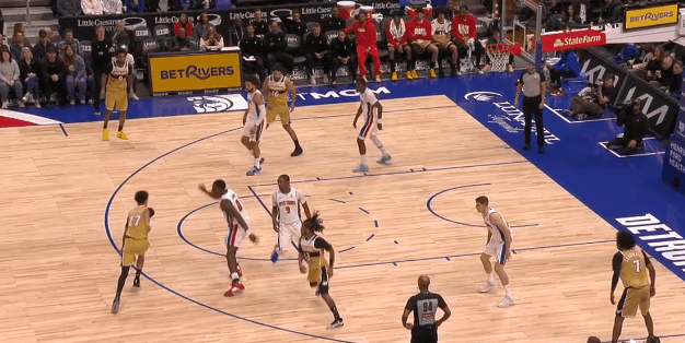 活塞坎宁安之外是:非选秀球员詹金斯,射手邓肯·罗宾逊。球队第三持球人:奥萨尔——还不如阿门呢。