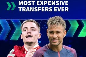 体育资讯06月21日讯 利物浦今晨官宣签下维尔茨,转会费总价刷新英国足坛纪录。德转盘点足坛最贵转会TOP10,内马尔2.22亿欧居首,姆巴佩1.8亿欧第二,维尔茨1.25亿欧第六。